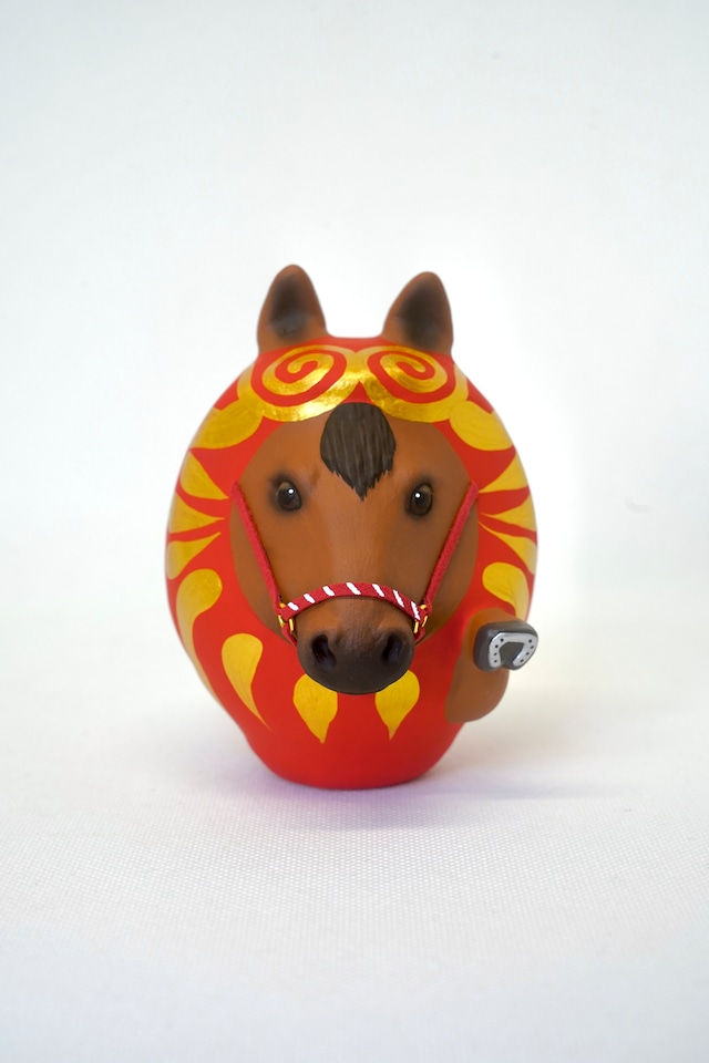 【重要】 ・一回の抽選に対して、お一人様一点のご応募とさせていただきます。複数のご応募を確認した場合、無効とさせていただく場合があります。予めご了承ください。 ・他の商品(座布団などの通常商品など)と同時に購入することはできません。 ・抽選販売 の決済方法はクレジットカード決済のみとなります。 ・応募完了後に確認メールが自動送信されます。 この時点で確認メールが届かない場合は抽選結果のメールも届かない場合があります。 迷惑メールフォルダに入っていないか、パソコンからのメールが受信出来る設定になっているかご確認ください。 ・当選確定後は直ちに発送の準備を行いますのでキャンセルが出来ません。熟考のもとお申込みをお願い致します。 高さ11㎝、横幅8㎝、奥行10㎝ 馬は人と密接な関係を築いてきたことから、縁起の良い動物として寵愛されてきました。 古来より神様の乗り物とされ、神社に奉納されるなど現在の絵馬の由来ともなっています。 特に白馬は古くから神聖な存在とされ、年の初めに白馬を見ると、その年の邪気が払われ無病息災になると言われています。 「物事が“うま(馬)" くいく」といった語呂合わせがあるほか、力強く駆ける姿は「幸運が駆け込んでくる」とされ、運気上昇、成功運や行動力、活力を呼び込むと信じられています。 武将たちは「勝運」や「出世」を願って馬具にこだわったと伝えられています。 馬の蹄につける蹄鉄(ていてつ)は、ヨーロッパでは魔除けや富の象徴とされ、幸運を呼ぶラッキーモチーフとして知られています。 逆U字型の馬蹄は不運を落とすと考えられており、厄除けの意味で用いられることも。 また、幸運が降り注ぐとも言われています。 だるまの「無病息災」「心願成就」のパワーも加わり重ね重ね縁起が良く、プレゼントにもお勧めです。 【「左手」は人を招く】 左手は商売繁盛や良縁など、人に関する福を呼び込んでくれるとされています。 ※ 全て手作りの一点物です。 ひとつひとつ心を込めて創っています。サイズや色は微妙に変わることがあります。また表情や顔つきも1つ1つ少しずつ違います。あらかじめご承知おきください。