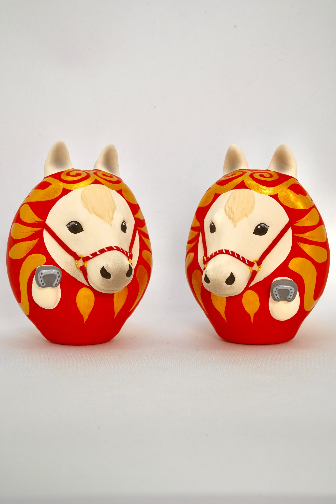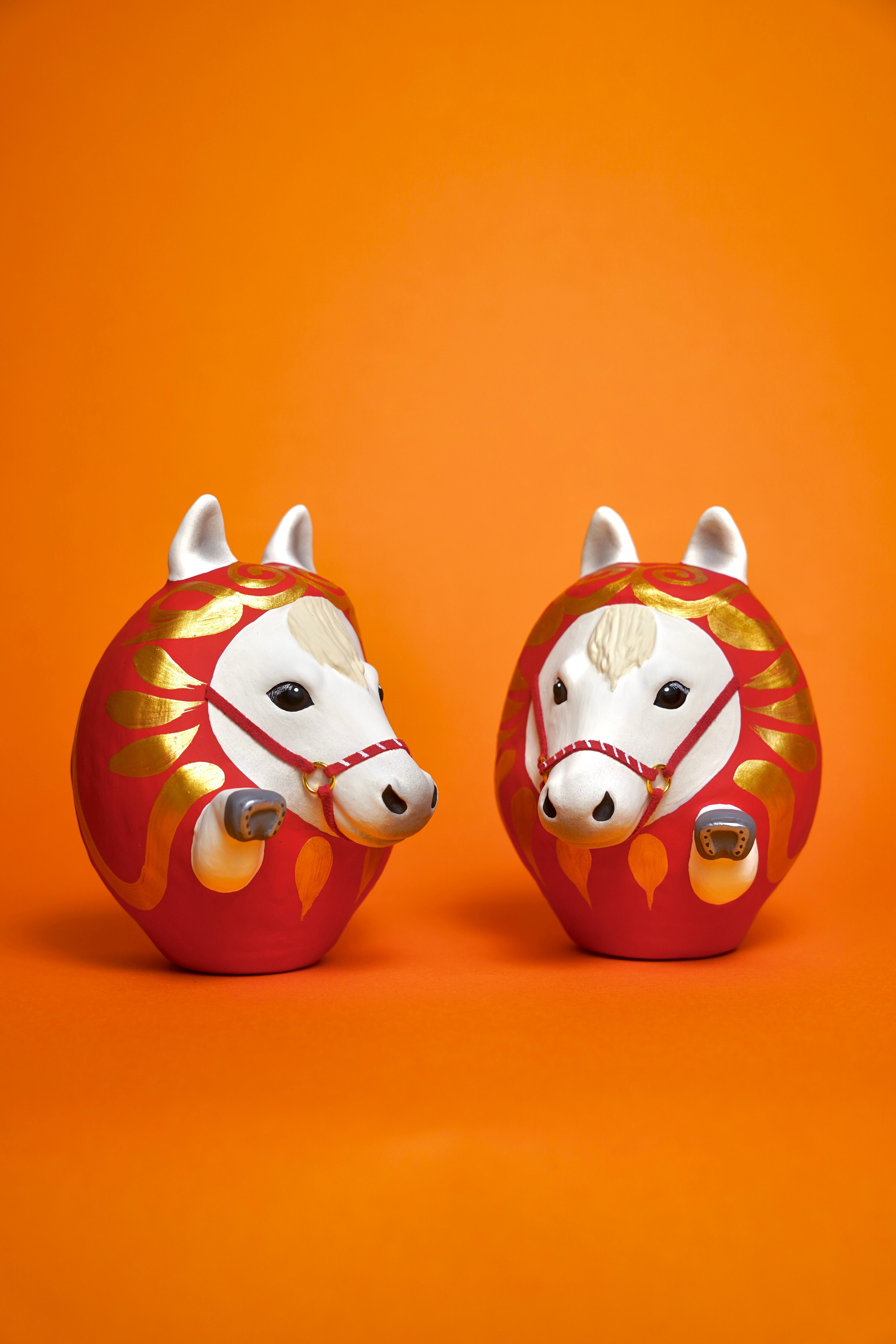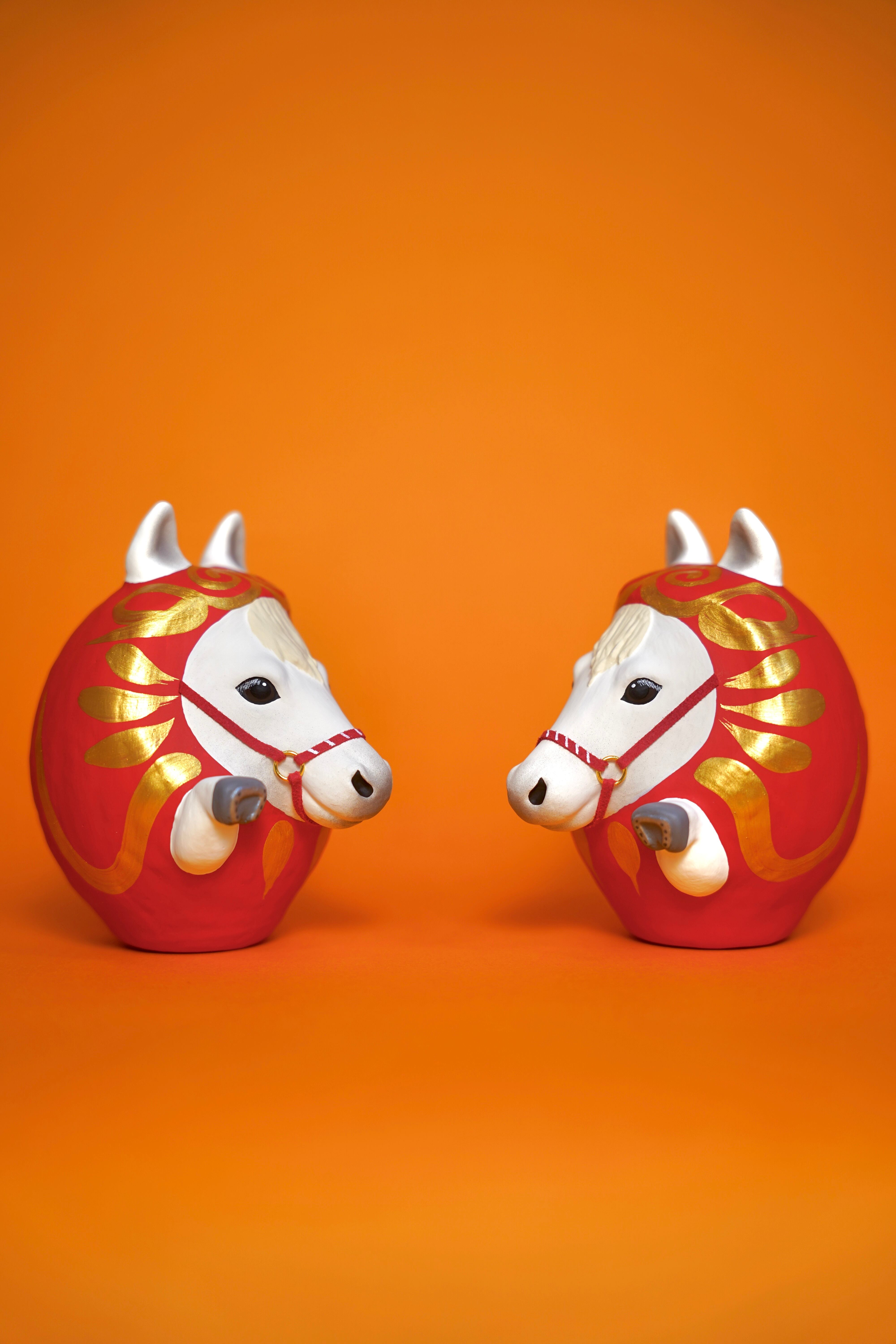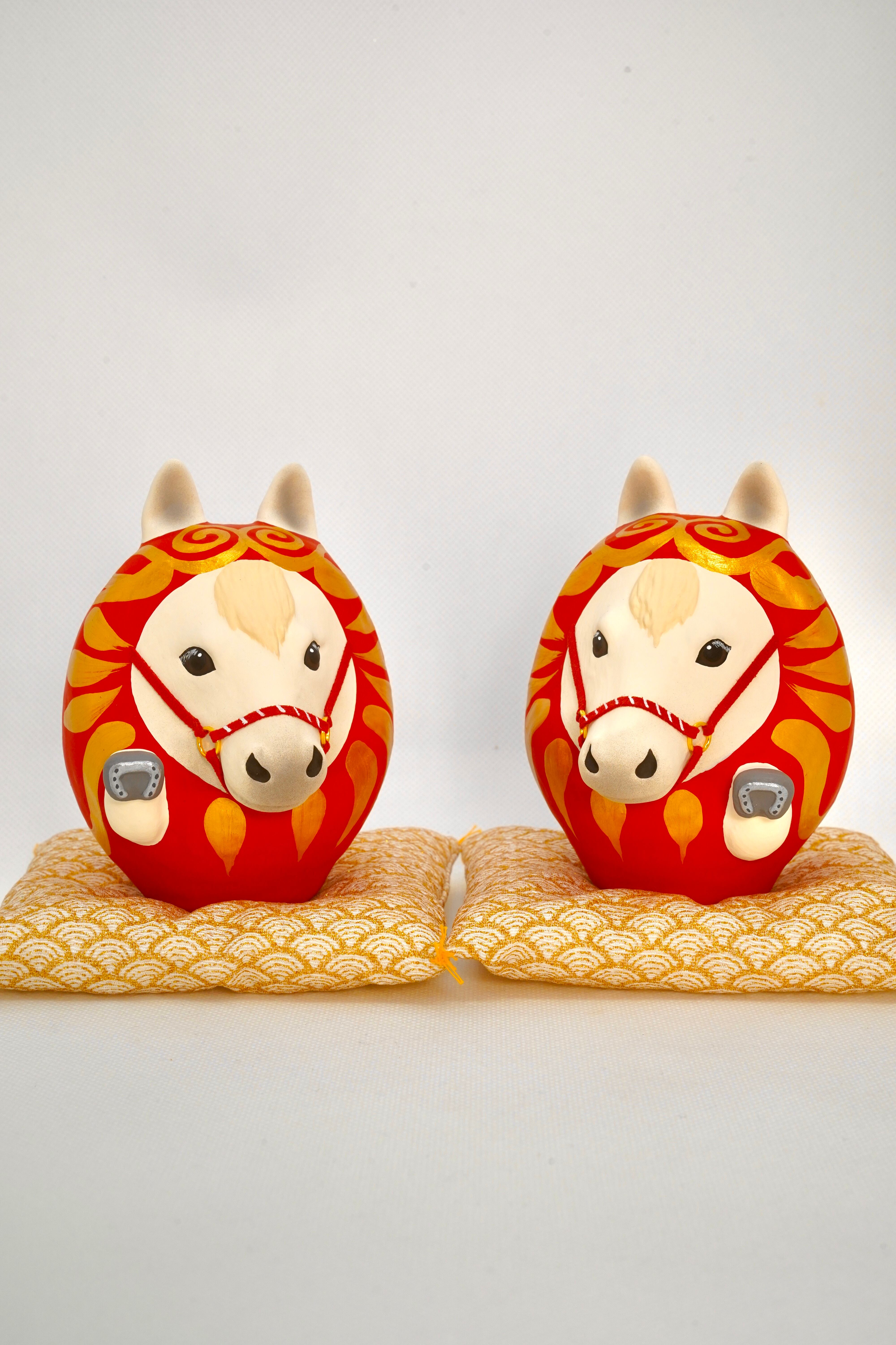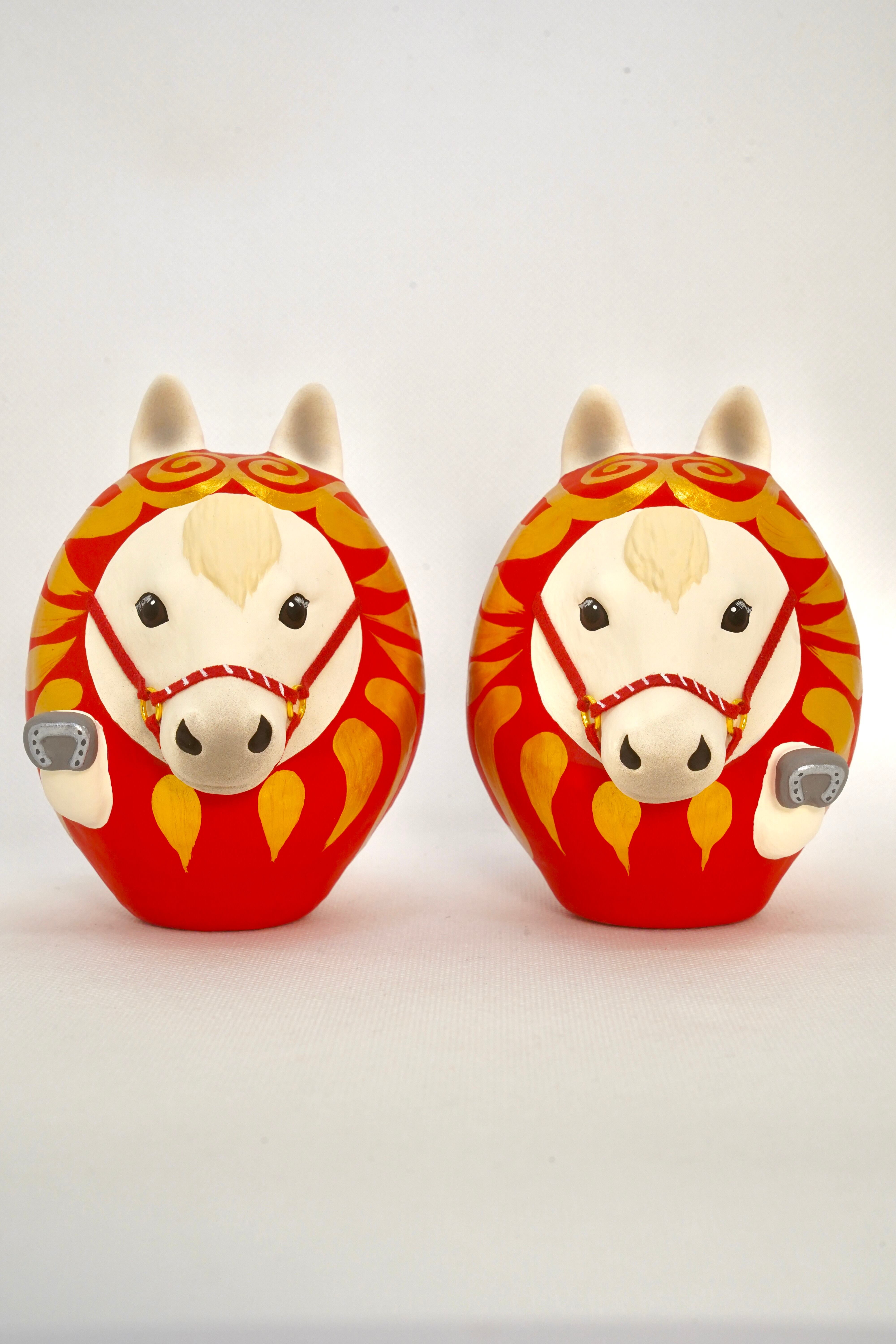 干支だるま【午】左右セット(白×白)